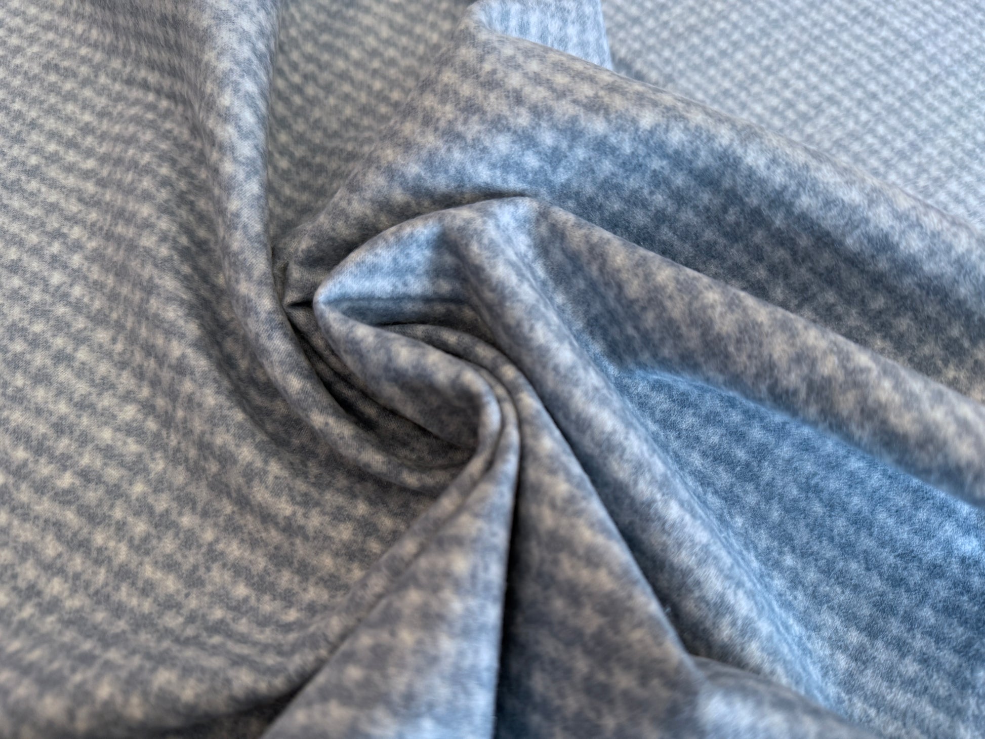 100% Cotton Flannel - Brushed Stone Blue Houndstooth Print