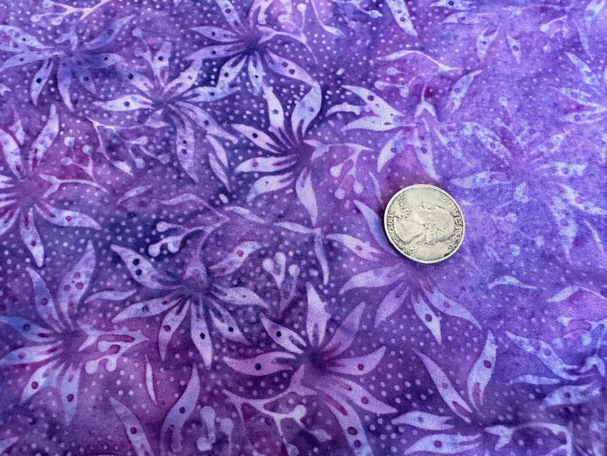 These Batiks are particularly great for making scarves, ponchos, and garments with a loose drape, or anything where you will see the reverse of the fabric. Most printed fabrics only have the print on one side. But because of the batik process, both sides of the fabric have taken the dyes. They will be slightly different, but they're both beautiful.