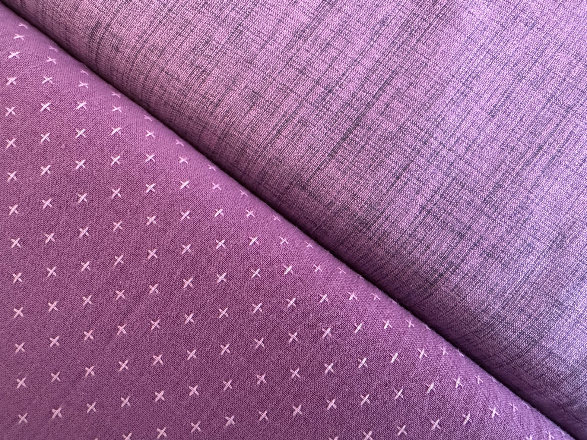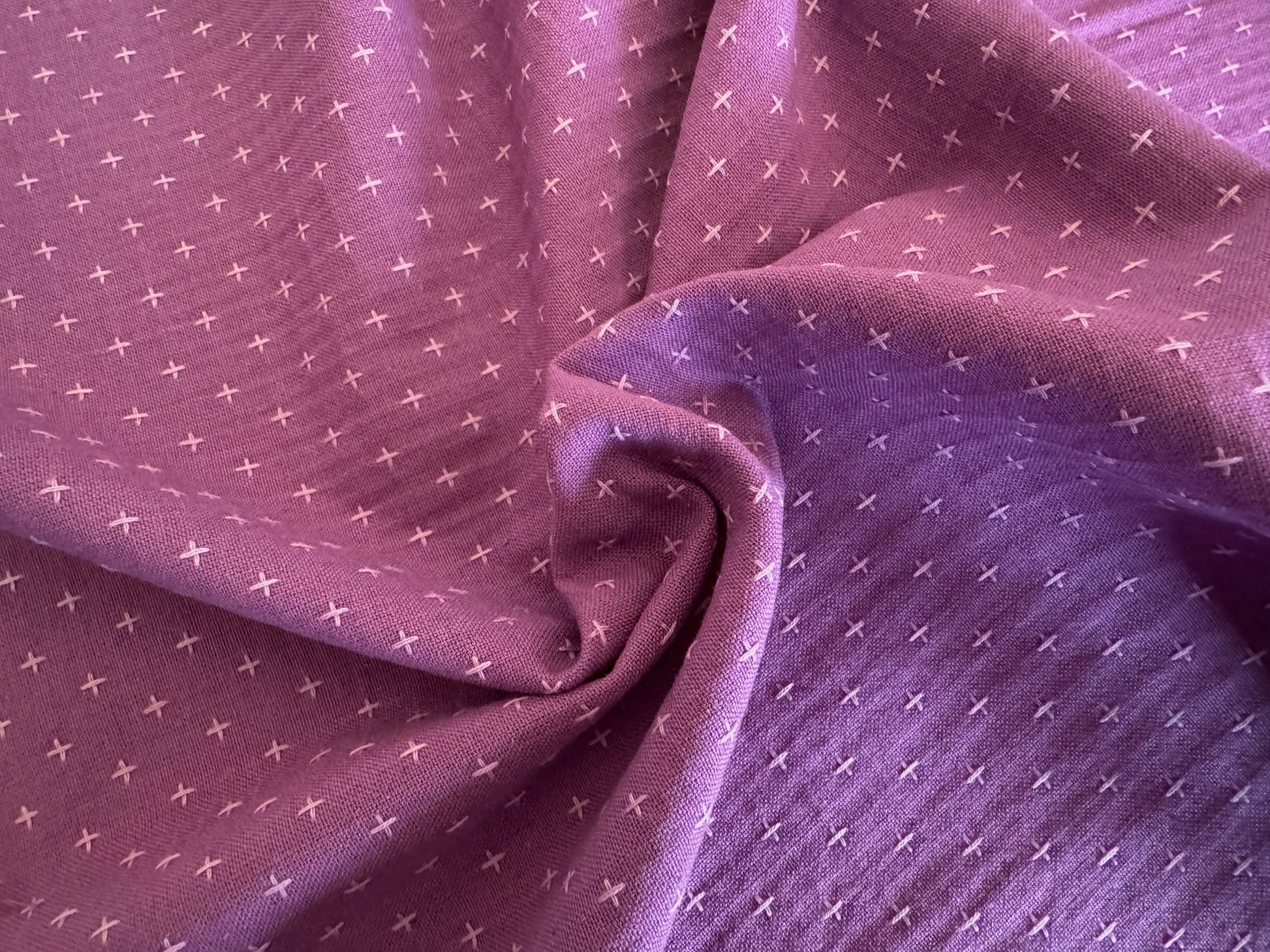 This fabric is a light grape-y purple. The dobby designs are the palest lilac. Check out the beautiful reverse on this fabric!