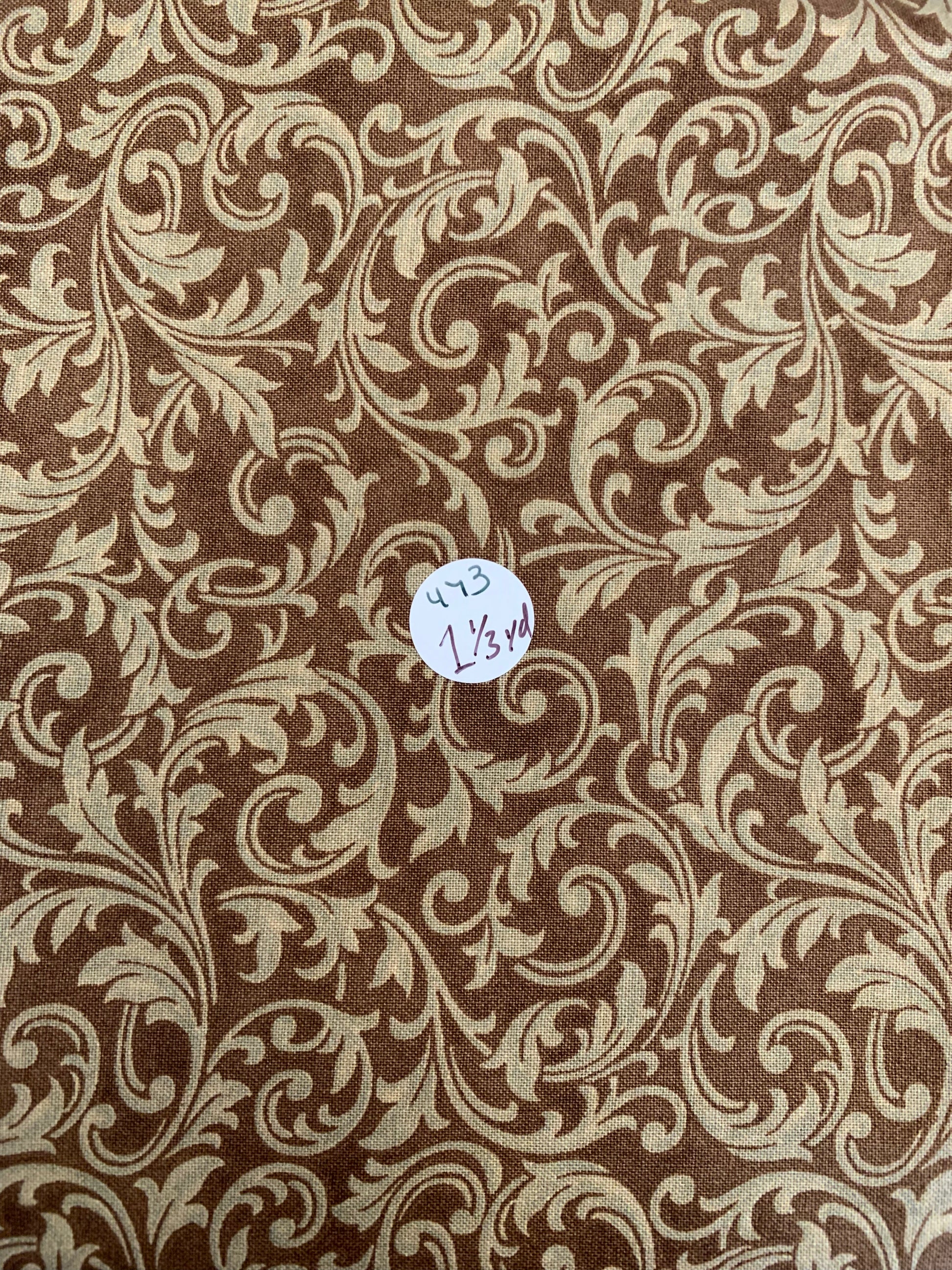 Quilters Cotton Remnant "Bronz Leaf Scroll" 1 1/3yds #473