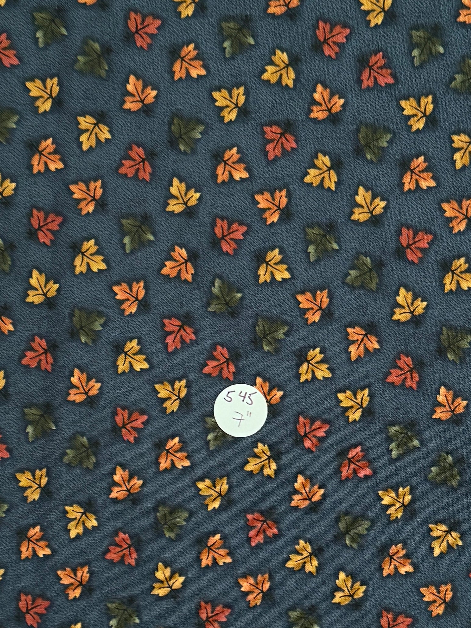 Remnant Quilting Cotton 7" "Fall Flowers on Denim Blue " #545