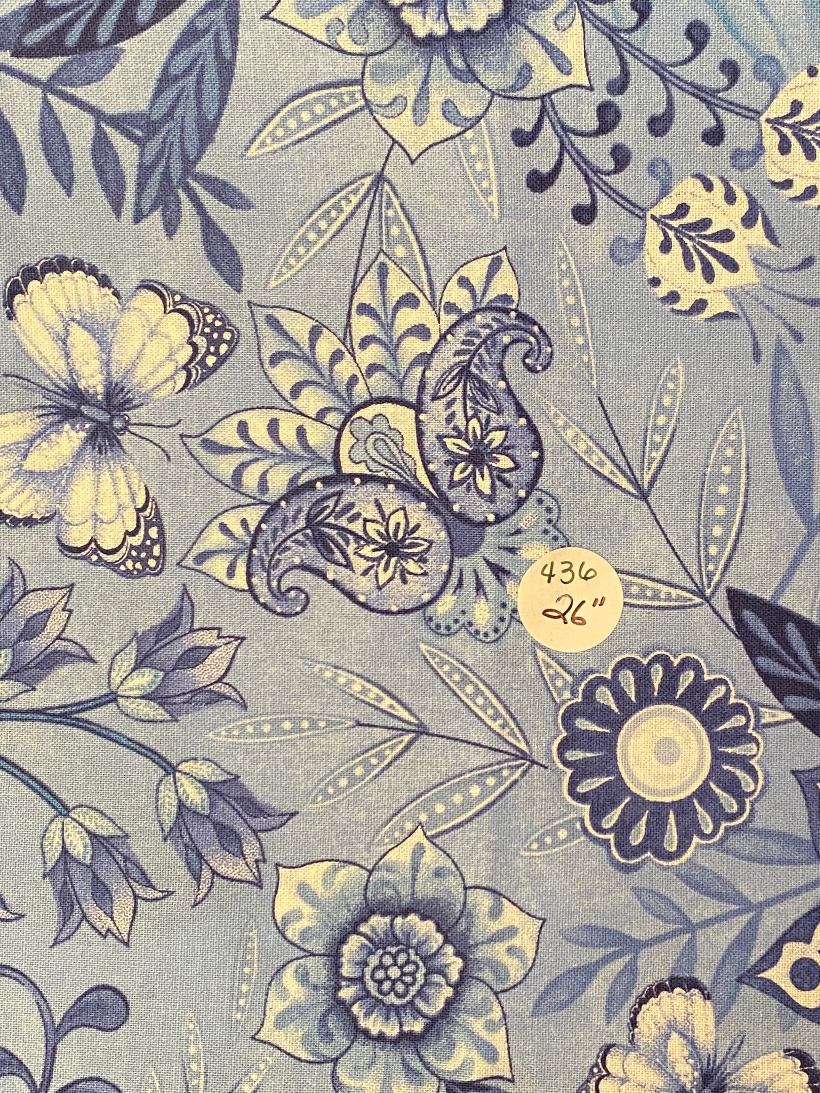 Remnant Quilting Cotton "Blue Paisley Flowers" 20" #435