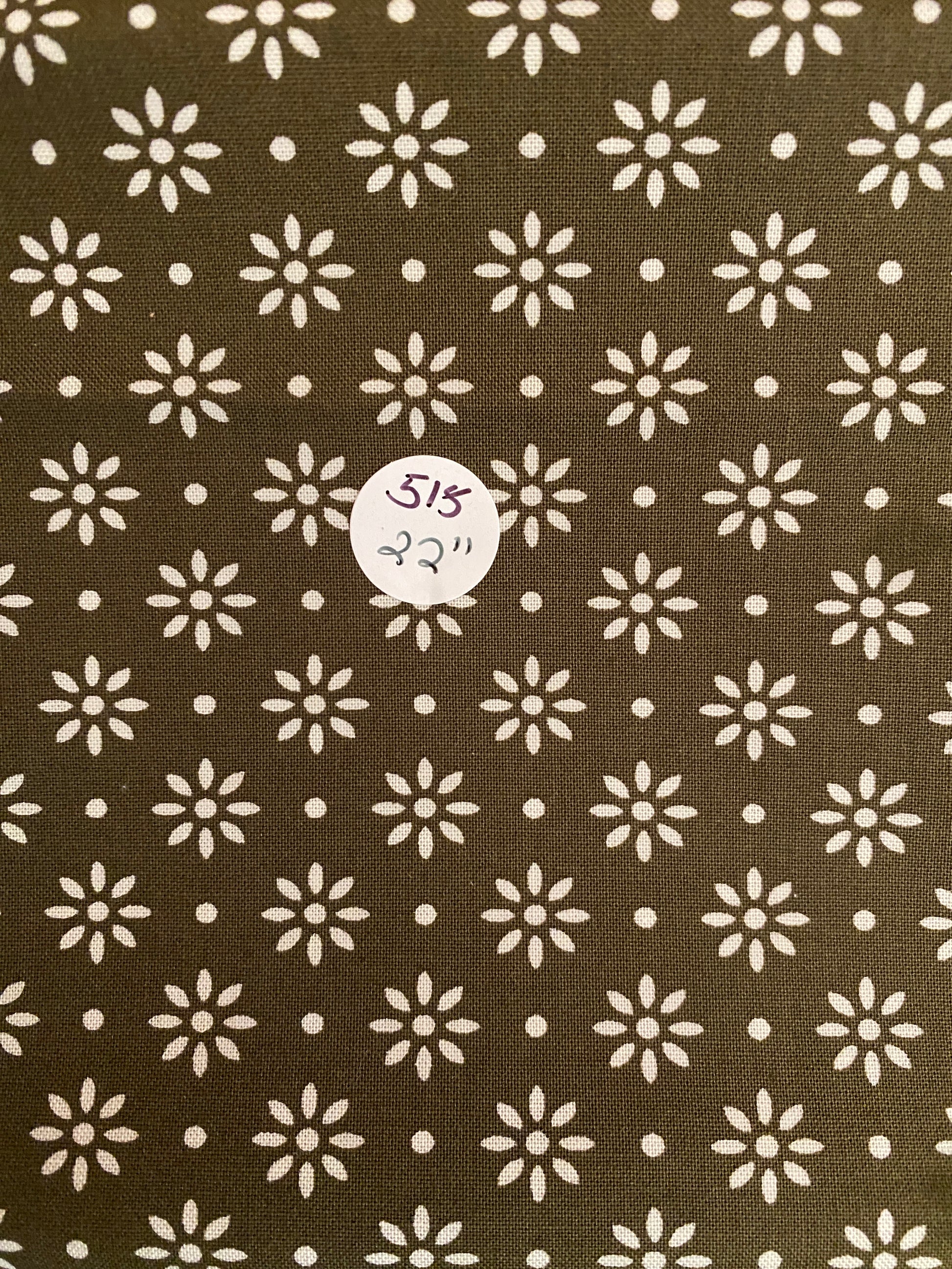 Remnant Quilting Cotton. "White Flowers on Brown" 22" #515